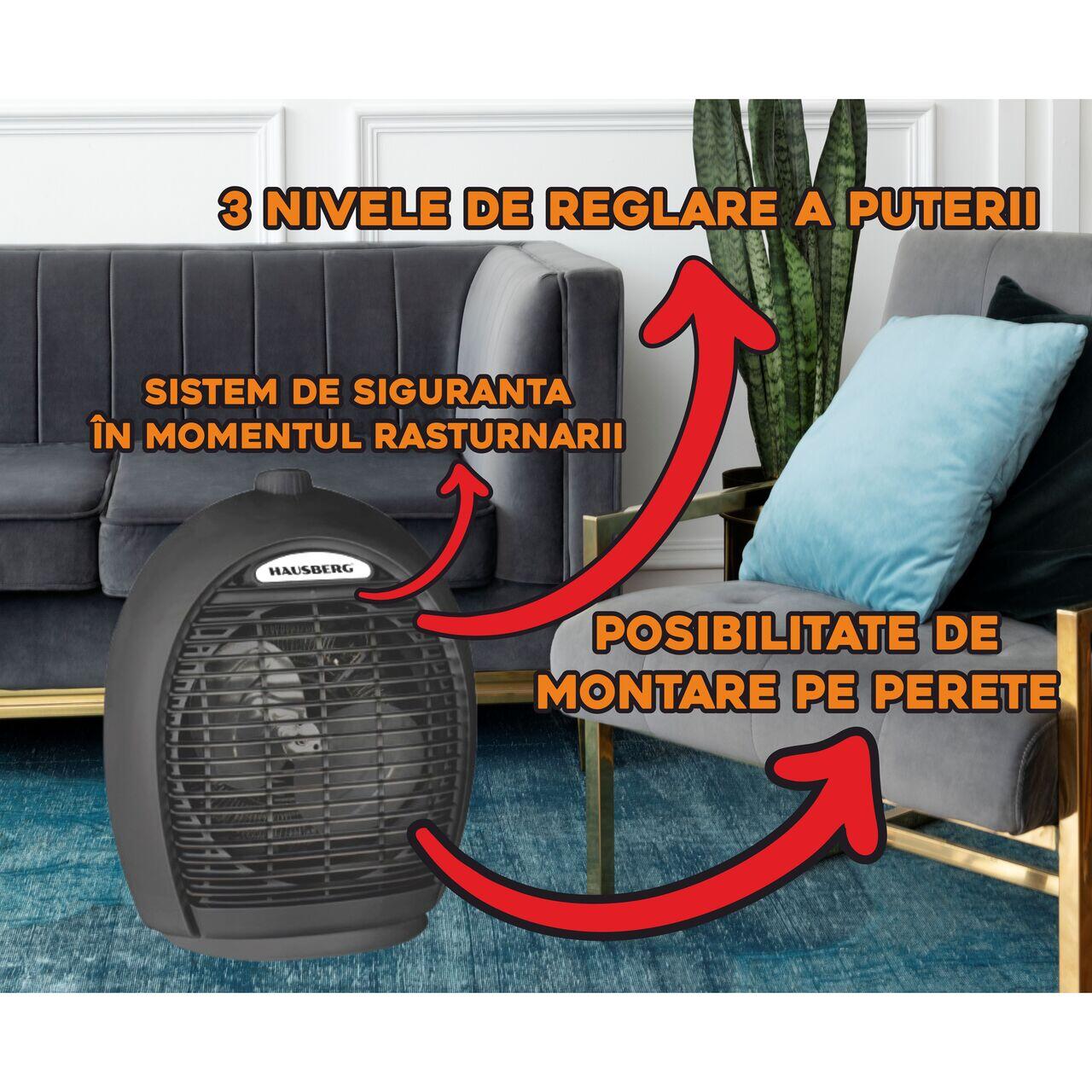 Aeroterma Hausberg HB-8504NG, 2000 W, 3 trepte de putere