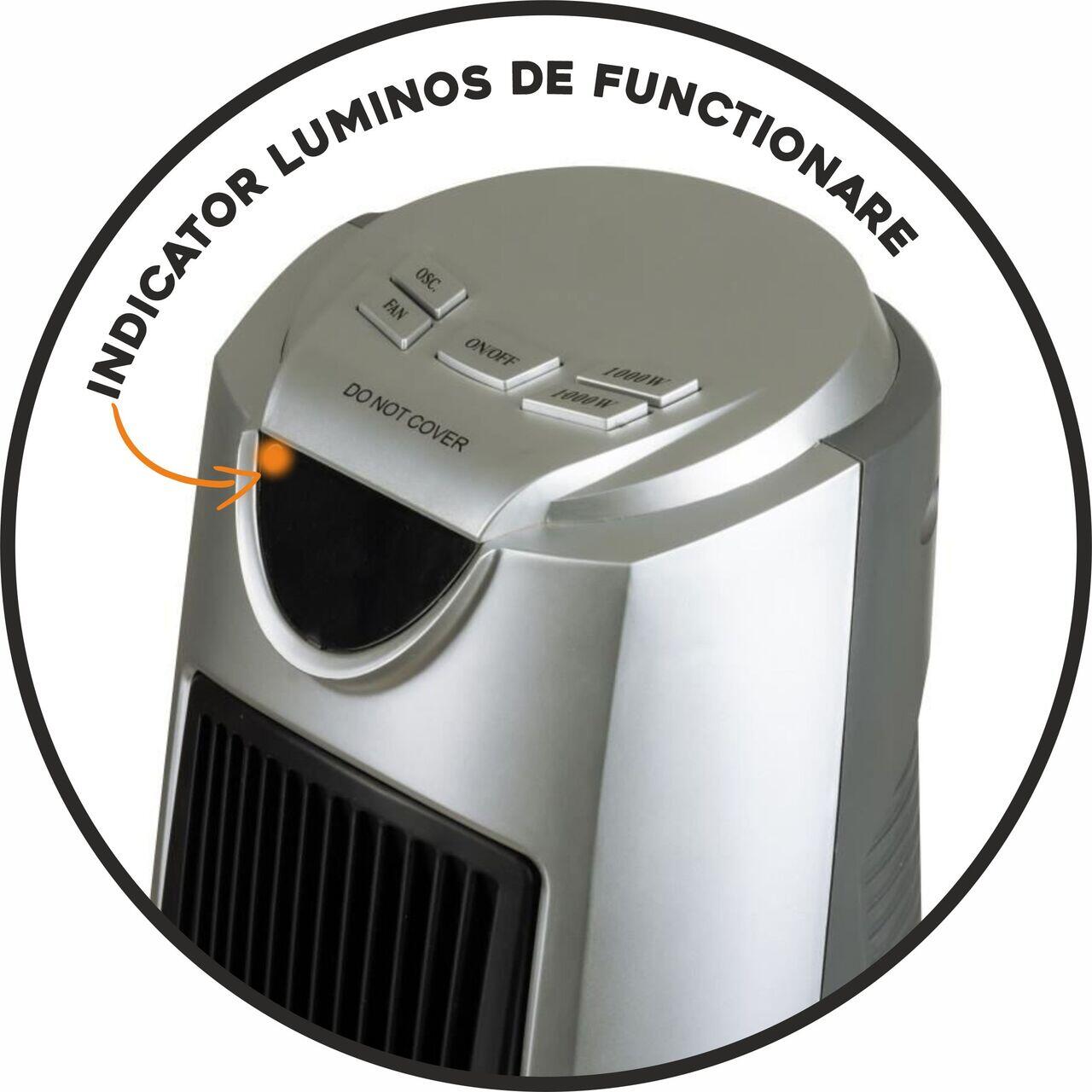 Aparatul oferă 2 trepte de putere (1000W și 2000W), permițându-ți să reglezi nivelul de căldură în funcție de necesități. De asemenea, este echipat cu protecție la supraîncălzire, pentru o utilizare sigură și de lungă durată.