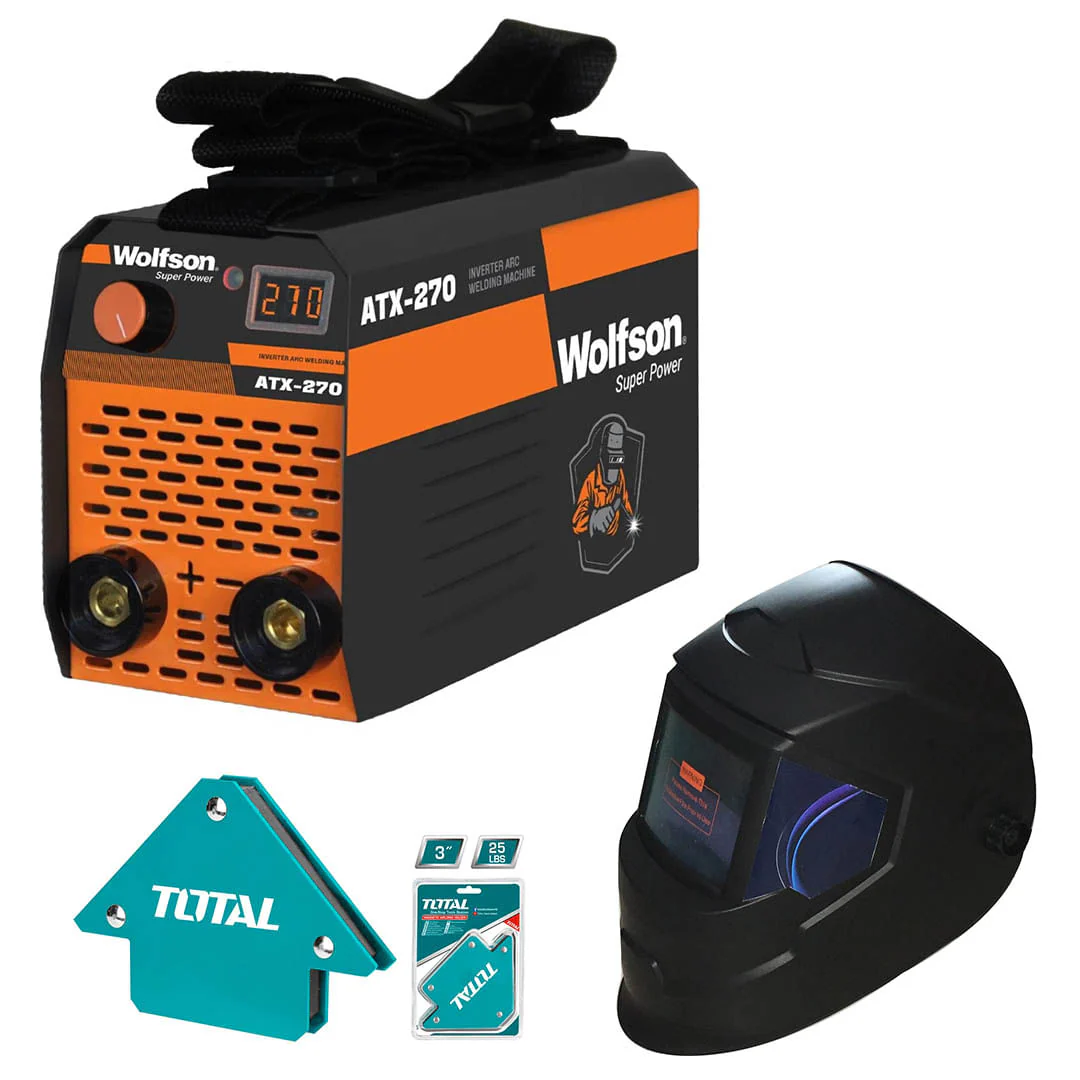 Aparat de sudura WOLFSON ATX-270, MMA 120A, Invertor tehnologie inalta + Masca de sudura automata, Coltare magnetice sudura