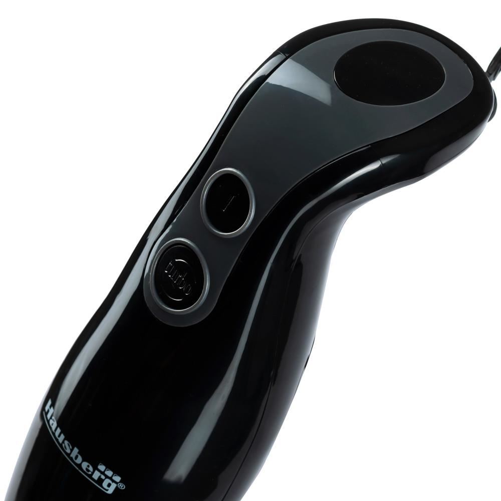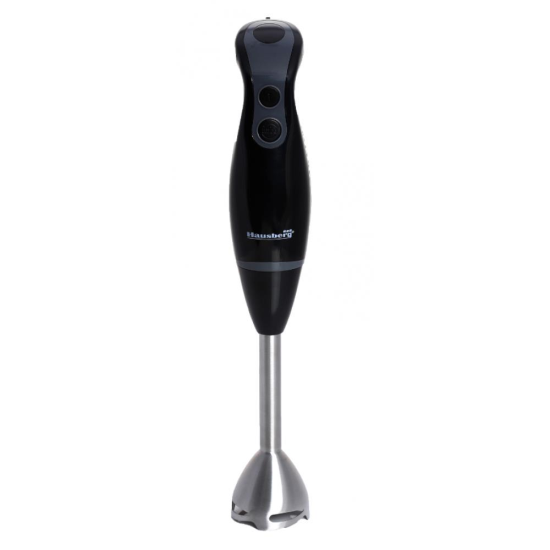 - Cu blenderul de mână de la Hausberg , bucură-te de putere optimă, cu minim de efort. Prepară în cel mai scurt timp o gamă largă de preparate, datorită motorului de 300 W și păstrează controlul cu cele 2 de viteze, care pot fi ajustate fără oprirea blenderului, într-un mod intuitiv datorită iluminării de pe fundal.