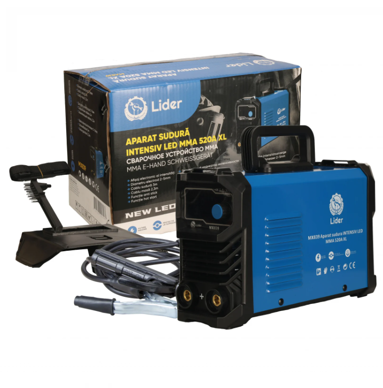 Aparat de sudura LIDER XL tip MMA, 520Ah este un aparat pentru sudura monofazat, tip invertor, recomandat in special pentru sudarea cu electrozi inveliti in curent continu, prin procedeul MMA (Manual Metal Arc)