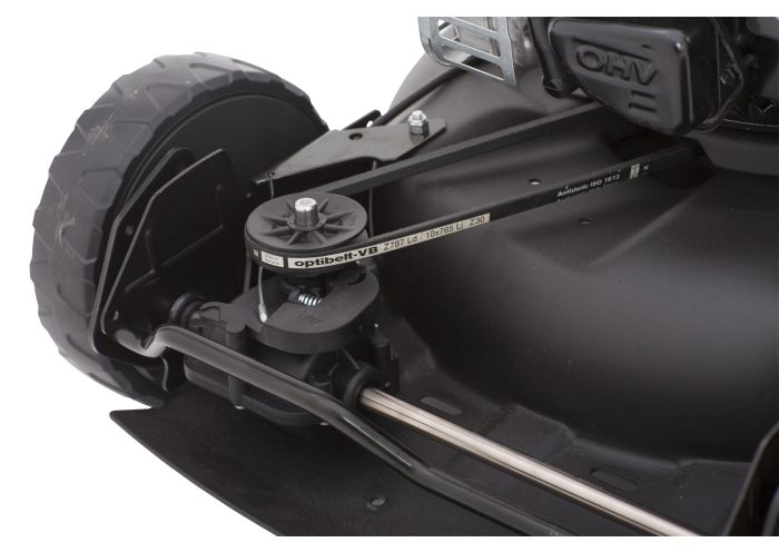 Sasiu din otel ambutisat deosebit de rezistent (2.5mm grosime) – este realizat dintr-o singura piesa asigurand o utilizare indelungata, fara alte imbinari sau suduri; astfel iarba se misca mult mai usor si este maruntita mult mai eficient.