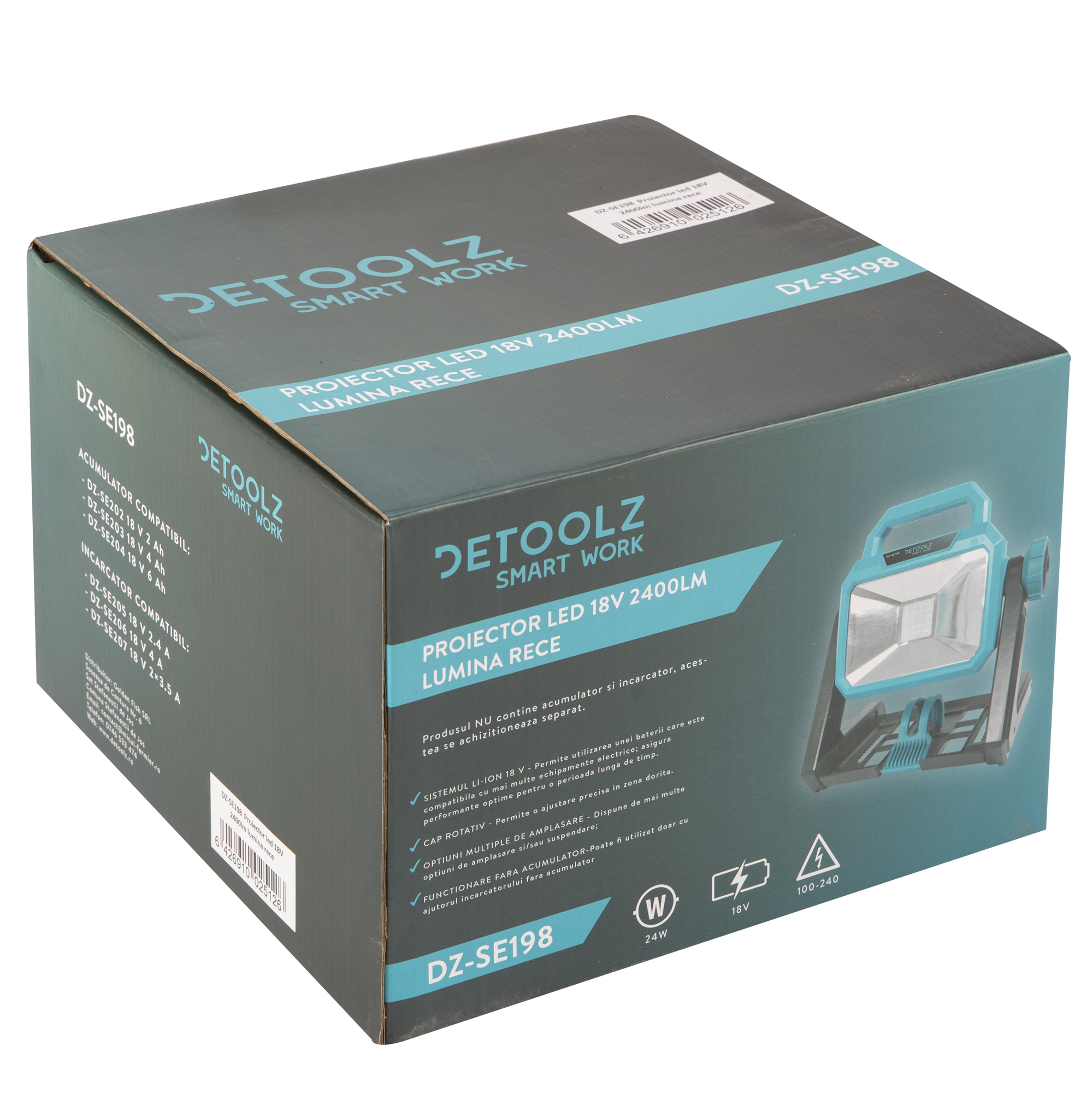 Proiector led Detoolz, 18V, 2400lm, lumina rece